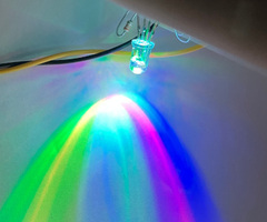 さらに三色の LED を厳密に一点に設置することは不可能であるため、 LED からすべての方向に対して同じように発光させることは困難となる。向きによっては赤が強かったり青が強かったりするのは避けられない。